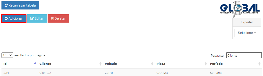 Selecione o tipo de período para o recebimento do relatório de monitoramento no e-mail principal do cliente: