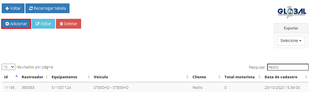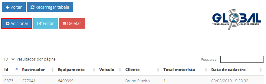Nessa guia, realize o vínculo entre o motorista e os rastreadores identificadores de motoristas: RFID, IBUTTON ou W Tag, que são instalados juntos ao rastreador. Para que isso ocorra o equipamento deve estar vinculado na Oficina.