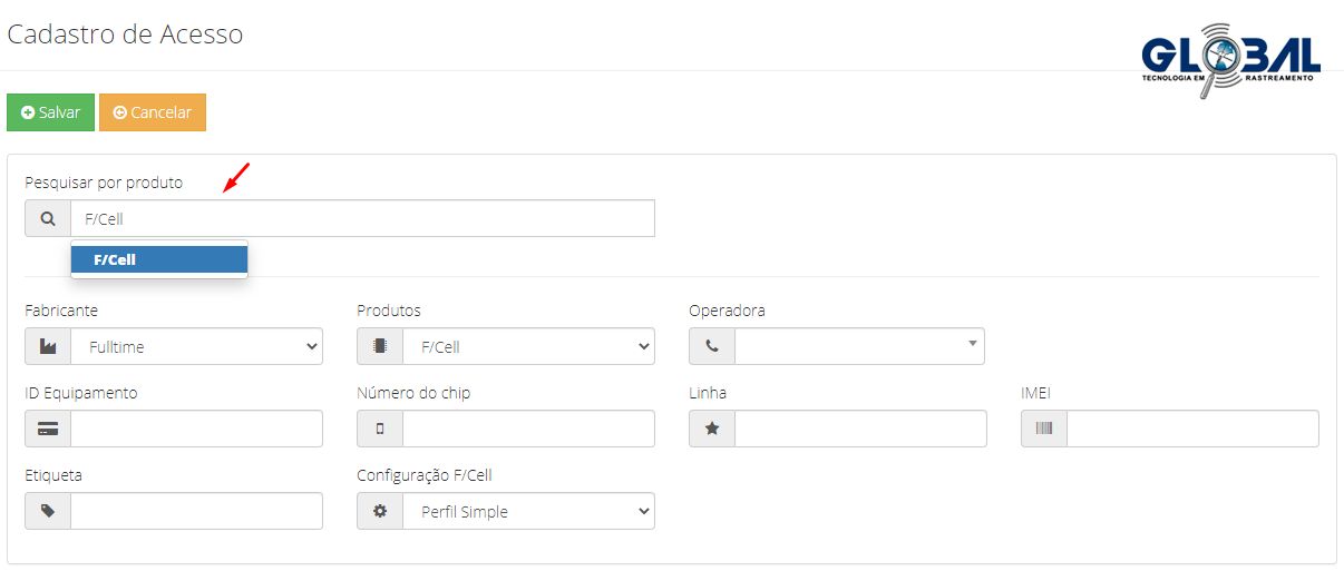 Para acompanhar e monitorar o equipamento rastreador F/Cell no sistema Global Cianorte, acesse as guias: