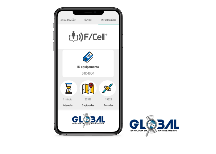 Na tela de Informações, gere o ID equipamento. Visualize o Intervalo de comunicação do aplicativo de acordo com as Configurações → F/Cell, a quantidade de posições Capturadas e Enviadas do aplicativo móvel para a plataforma.