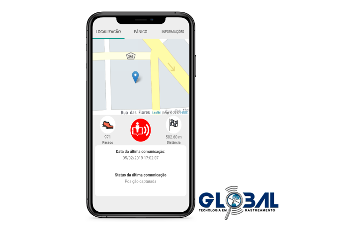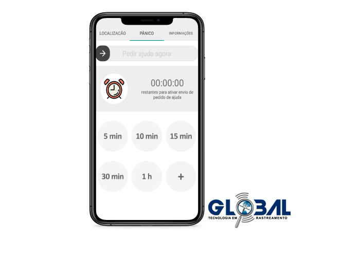 Na tela de Pânico, o envio do Alerta de Pânico para o sistema Global Cianorte pode ser realizado manualmente ou programado a cada 5/10/15/30 minutos, ou 1 hora. Também é possível programar o alerta de pânico em uma localização, caso o rastreado se posicione nela, o alerta será gerado. Se o alerta de pânico não for desativado em um período, um alerta será emitido para que medidas securitárias sejam tomadas.